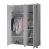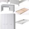 Dit bed (90×200) van de ERIK collectie is vervaardigd in wit gelakte MDF in combinatie met massief grenen. De lattenbodem bestaande uit 13 latten is inclusief. Het hoofd- en voeteinde van het bed hebben een verticaal gefreesd detail. Het bijhorende rolbed kan gebruikt worden als extra slaapplaats voor logees of als opbergruimte. Het nachtkastje beschikt over 1 legplank en 1 lade. De 3-deurs kleerkast beschikt over een kledinghanger en 2 legplanken over de gehele breedte van 2 deuren en 4 legplanken achter de derde deur. Het bureau beschikt over een ruim schrijfoppervlak en 1 kast aan de rechterzijde. Het eenvoudige maar landelijk uiterlijk van deze collectie maakt dat het past in elke kinder- of jeugdkamer.
