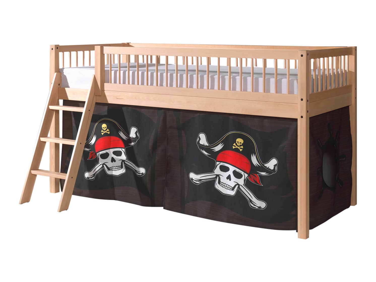 De FORREST BEECH hoogslaper (90 x 200 cm) in natuur is vervaardigd uit hoogwaardige kwalitatieve Europese beuk. Deze stijlvolle ruimtebesparende halfhoogslaper kan gepersonaliseerd worden met een optionele textielset die de warme uitstraling van het hout extra benadrukt. De ruimte onder het bed kan gebruikt worden om te spelen of als opbergruimte. De ladder kan zowel links als rechts gemonteerd worden. De FORREST collectie is ontworpen met oog voor detail en straalt kwaliteit uit op elk niveau. Het speelgordijn in het thema Caribian Pirates is hierop een perfecte aanvulling. Kinderen genieten met volle teugen van hun verborgen speelparadijs onder hun bed!