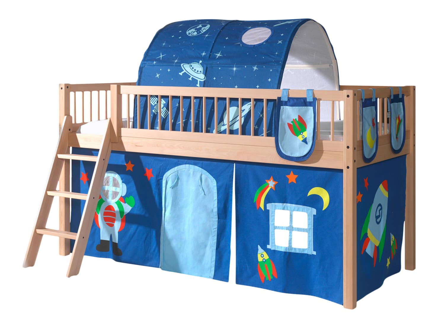 De FORREST BEECH hoogslaper (90 x 200 cm) in natuur is vervaardigd uit hoogwaardige kwalitatieve Europese beuk. Deze stijlvolle ruimtebesparende halfhoogslaper kan gepersonaliseerd worden met een optionele textielset die de warme uitstraling van het hout extra benadrukt. De ruimte onder het bed kan gebruikt worden om te spelen of als opbergruimte. De ladder kan zowel links als rechts gemonteerd worden. De FORREST collectie is ontworpen met oog voor detail en straalt kwaliteit uit op elk niveau. De textielset in het thema Astro is hierop een perfecte aanvulling. Kinderen genieten met volle teugen van hun verborgen speelparadijs onder hun bed!