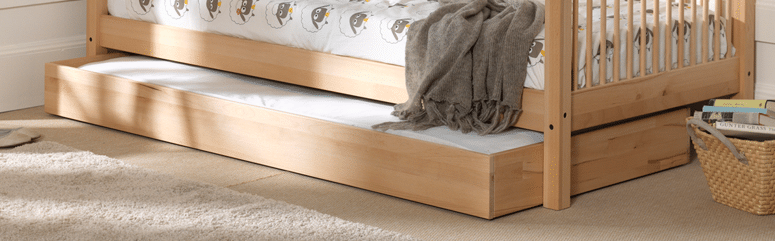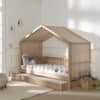 Het FORREST BEECH huisbed (90 x 200 cm) in natuur is vervaardigd uit hoogwaardige kwalitatieve Europese beuk. Dit bed beschikt over een hekje langs 3 kanten dat kan dienen als uitvalbeveiliging, maar het is ook ideaal als zitbank. Maak het extra gezellig met kleurrijke kussens, dekentjes en een lichtslinger als decoratie. Het dak van het huisbed kan eenvoudig weggehaald worden waardoor dit item getransformeerd kan worden tot een tijdloos kajuitbed. De bedlade biedt een extra slaapplek voor een gast maar kan net zo goed dienen als extra opbergruimte. De bijhorende textielset benadrukt het warme karakter en uitstraling van het hout en cre�ert een gezellige en geborgen slaapplek. De FORREST collectie is ontworpen met oog voor detail en straalt kwaliteit uit op elk niveau.