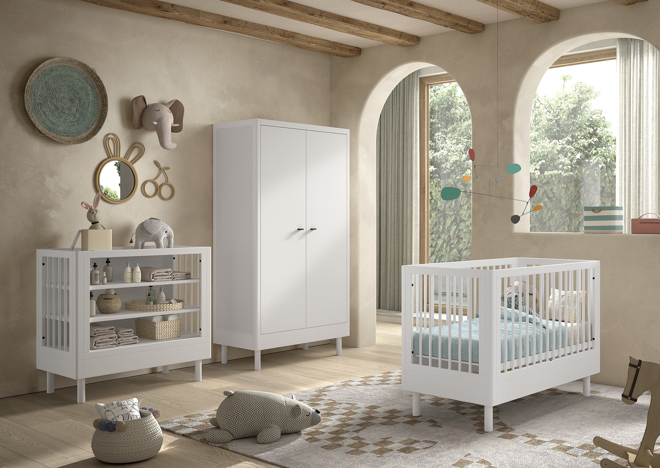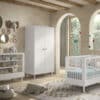Het FORREST BEECH babybed (60 x 120 cm) in wit is vervaardigd uit hoogwaardige kwalitatieve Europese beuk. Het bed is ontworpen met verticale spijlen aan alle vier zijden voor optimale veiligheid en zichtbaarheid. Ook kan de lattenbodem versteld worden op 3 verschillende hoogtes, zodat het zich aanpast aan de behoeften van het opgroeiende kind. Dankzij het stevige frame en de verfijnde afwerking is dit bed een veilige plek voor je baby. De verzorgingstafel heeft 2 open legplanken en combineert functionaliteit met een tijdloze stijl. Dit is een ideale toevoeging aan elke ruimte die een oplossing nodig heeft voor verzorgingsactiviteiten of opbergbehoeften. De kleerkast biedt voldoende opbergruimte en bestaat uit 3 legplanken en een kledingrail. De FORREST collectie is ontworpen met oog voor detail en straalt kwaliteit uit op elk niveau.