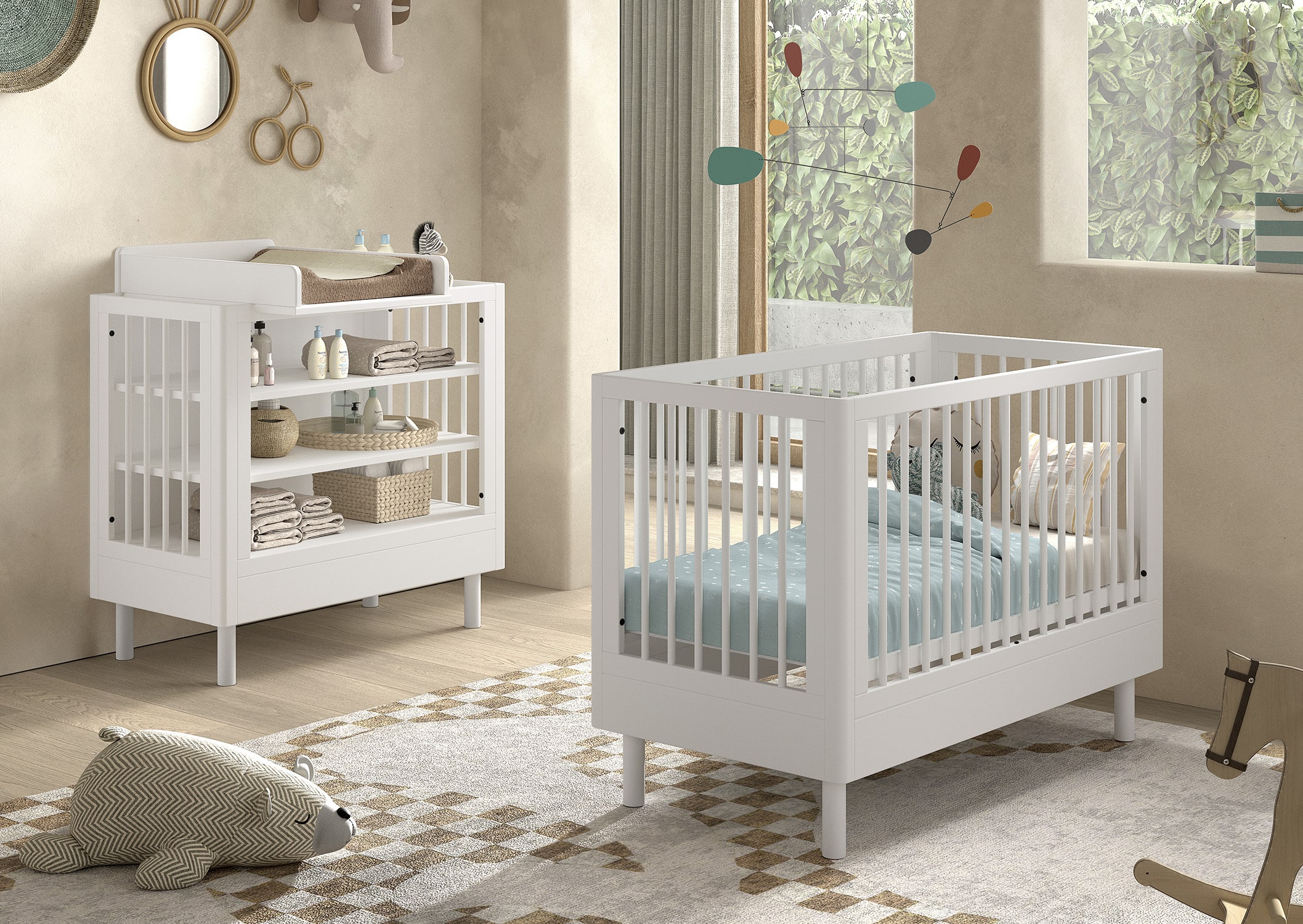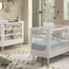 Het FORREST BEECH babybed (60 x 120 cm) in wit is vervaardigd uit hoogwaardige kwalitatieve Europese beuk. Het bed is ontworpen met verticale spijlen aan alle vier zijden voor optimale veiligheid en zichtbaarheid. Ook kan de lattenbodem versteld worden op 3 verschillende hoogtes, zodat het zich aanpast aan de behoeften van het opgroeiende kind. Dankzij het stevige frame en de verfijnde afwerking is dit bed een veilige plek voor je baby. De verzorgingstafel heeft 2 open legplanken en combineert functionaliteit met een tijdloze stijl. Dit is een ideale toevoeging aan elke ruimte die een oplossing nodig heeft voor verzorgingsactiviteiten of opbergbehoeften. Vergemakkelijk en verfraai de dagelijkse verzorging van je baby met het opzetstuk. Deze handige verzorgingsplank past perfect op de commode en de verzorginsgtafel van dezelfde collectie en biedt een veilige plek om je baby te verschonen en verzorgen door de opstaande randen en stevige constructie. De FORREST collectie is ontworpen met oog voor detail en straalt kwaliteit uit op elk niveau.