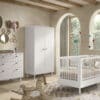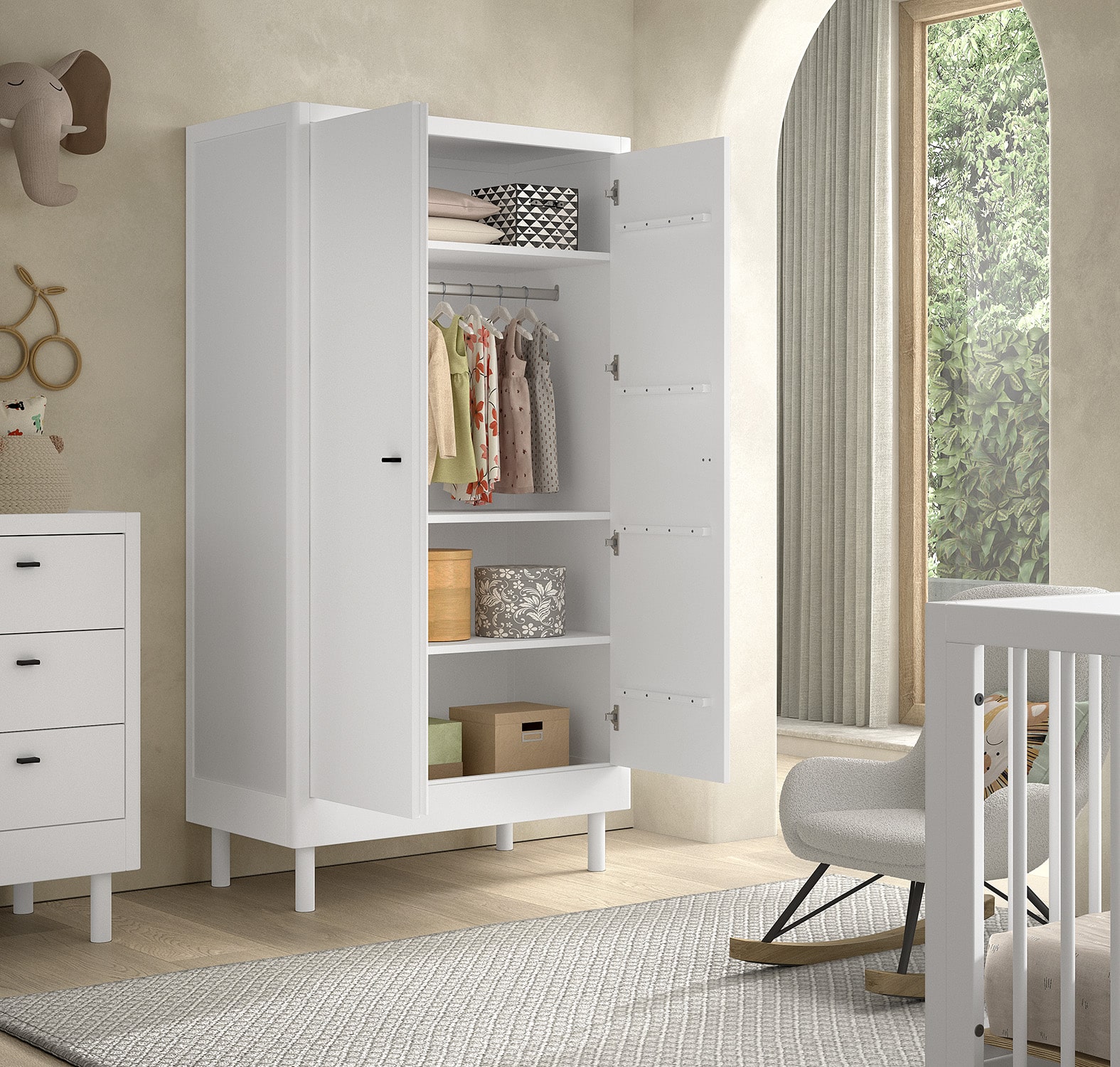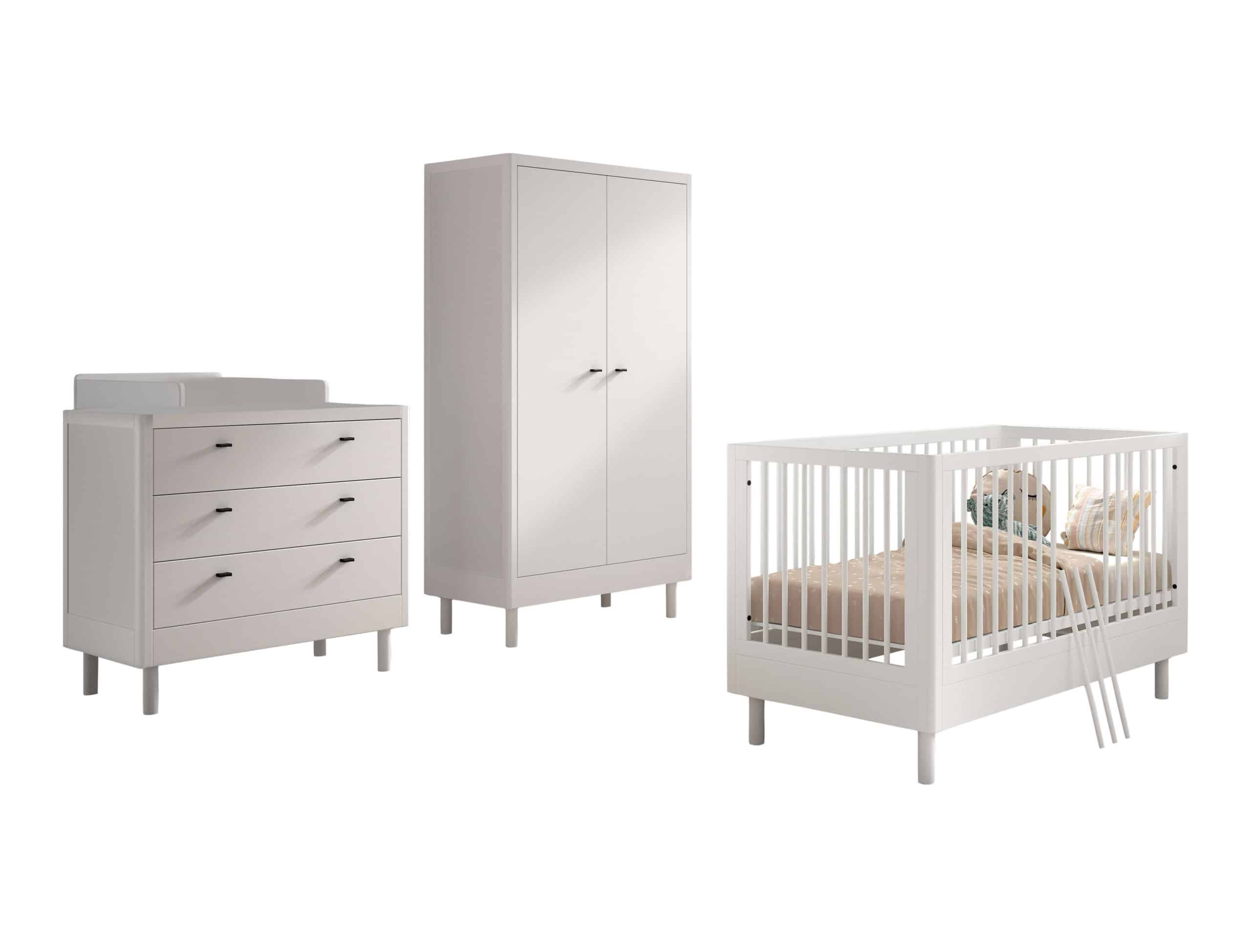 Het FORREST BEECH babybed (70 x 140 cm) is vervaardigd uit hoogwaardige kwalitatieve Europese beuk. Het bed is ontworpen met verticale spijlen aan alle vier zijden voor optimale veiligheid en zichtbaarheid. Ook kan de lattenbodem versteld worden op 3 verschillende hoogtes en kunnen 3 spijlen worden uitgehaald. Dankzij het stevige frame en de verfijnde afwerking is dit bed een veilige plek voor je baby. Dit babybed kan worden omgevormd naar een peuterbed, waardoor het een veelzijdig meubelstuk is dat zich aanpast aan de groeiende behoeften van een kind. De 2-deurs kleerkast biedt voldoende opbergruimte en bestaat uit 3 legplanken en een kledingrail. De commode heeft 3 ruime lades en combineert functionaliteit met een tijdloze stijl. Dit is een ideale toevoeging aan elke ruimte die een oplossing nodig heeft voor verzorgingsactiviteiten of opbergbehoeften. Vergemakkelijk en verfraai de dagelijkse verzorging van je baby met het opzetstuk. Deze handige verzorgingsplank past perfect op de commode en de verzorginsgtafel van dezelfde collectie en biedt een veilige plek om je baby te verschonen en verzorgen door de opstaande randen en stevige constructie. De FORREST collectie is ontworpen met oog voor detail en straalt kwaliteit uit op elk niveau.