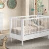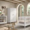 Het FORREST BEECH babybed (70 x 140 cm) is vervaardigd uit hoogwaardige kwalitatieve Europese beuk. Het bed is ontworpen met verticale spijlen aan alle vier zijden voor optimale veiligheid en zichtbaarheid. Ook kan de lattenbodem versteld worden op 3 verschillende hoogtes en kunnen 3 spijlen worden uitgehaald. Dankzij het stevige frame en de verfijnde afwerking is dit bed een veilige plek voor je baby. Dit babybed kan worden omgevormd naar een peuterbed, waardoor het een veelzijdig meubelstuk is dat zich aanpast aan de groeiende behoeften van een kind. De 2-deurs kleerkast biedt voldoende opbergruimte en bestaat uit 3 legplanken en een kledingrail. De verzorgingstafel heeft 2 open legplanken en combineert functionaliteit met een tijdloze stijl. Dit is een ideale toevoeging aan elke ruimte die een oplossing nodig heeft voor verzorgingsactiviteiten of opbergbehoeften. De FORREST collectie is ontworpen met oog voor detail en straalt kwaliteit uit op elk niveau.