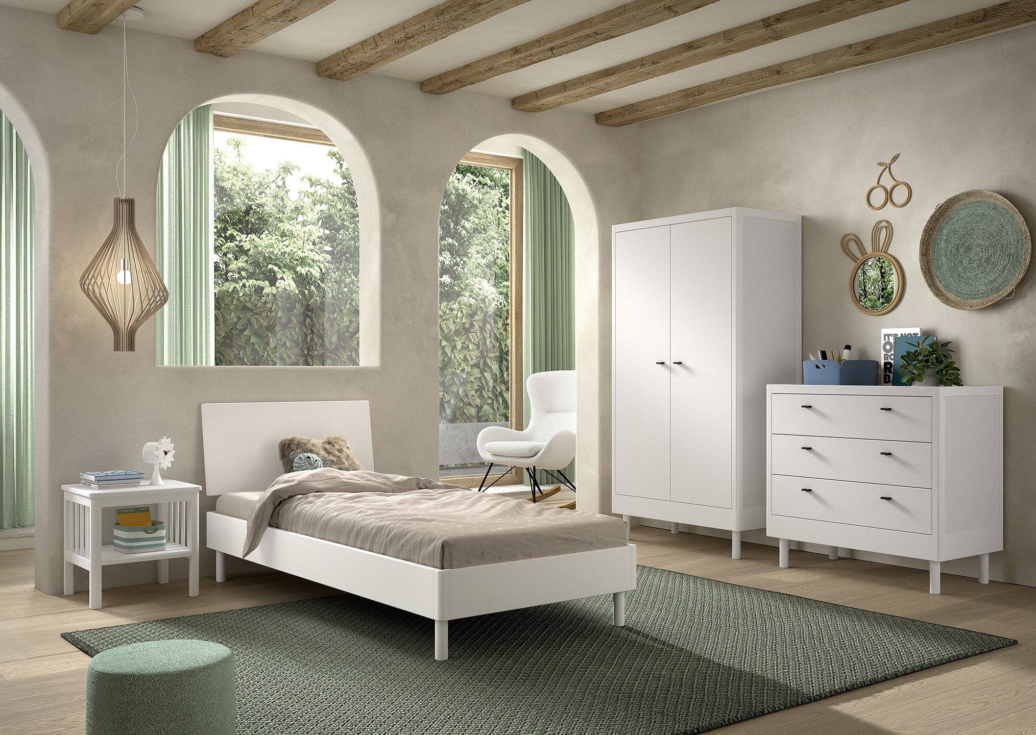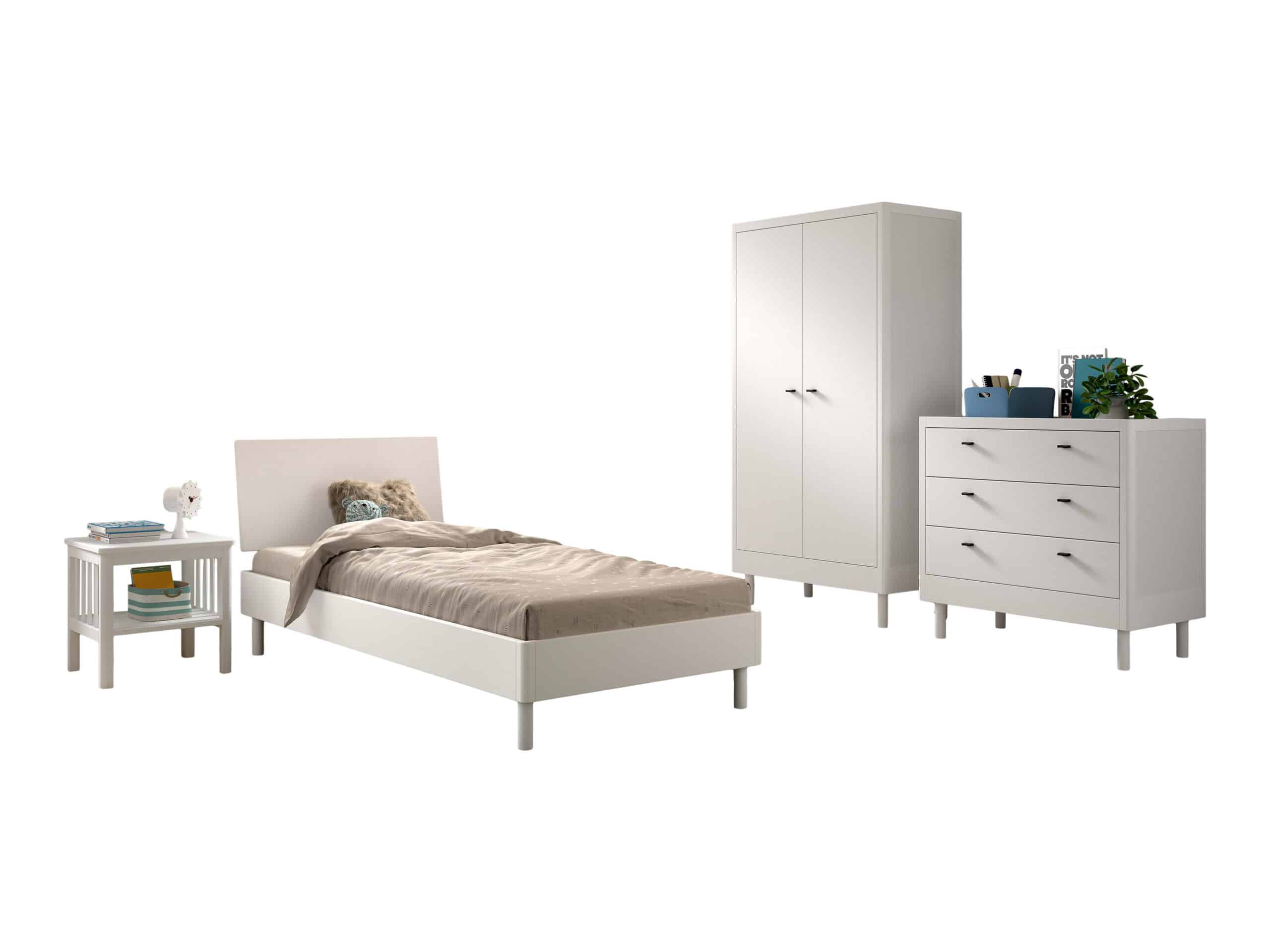Het FORREST BEECH bed (90 x 200 cm) is vervaardigd uit hoogwaardige kwalitatieve Europese beuk. Het hoofdbord en de omkadering in witgelakte beuk geven een warme uitstraling. De nachttafel beschikt over twee open legplanken voor het opbergen van essenti�le items. De 2-deurs kleerkast biedt voldoende opbergruimte en bestaat uit 3 legplanken en een kledingrail. De commode heeft 3 ruime lades en combineert functionaliteit met een tijdloze stijl, waardoor het een ideale toevoeging is aan elke ruimte die een oplossing nodig heeft voor verzorgingsactiviteiten of opbergbehoeften. De afwerking benadrukt de schoonheid van het beukenhout, terwijl de stevige constructie zorgt voor duurzaamheid. De FORREST collectie is ontworpen met oog voor detail en straalt kwaliteit uit op elk niveau.