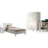 Het FORREST BEECH bed (90 x 200 cm) is vervaardigd uit hoogwaardige kwalitatieve Europese beuk. Het hoofdbord en de omkadering in witgelakte beuk geven een warme uitstraling. De nachttafel beschikt over twee open legplanken voor het opbergen van essenti�le items. Aan de linkerzijde van de kleerkast bevindt zich 2 legplanken en een kledingrail. Achter de rechterdeur zijn er nog eens 4 legplanken zodat er voldoende ruimte is voor het opbergen van kledij, beddengoed,… De commode heeft 3 ruime lades en combineert functionaliteit met een tijdloze stijl, waardoor het een ideale toevoeging is aan elke ruimte die een oplossing nodig heeft voor verzorgingsactiviteiten of opbergbehoeften. De afwerking benadrukt de schoonheid van het beukenhout, terwijl de stevige constructie zorgt voor duurzaamheid. De FORREST collectie is ontworpen met oog voor detail en straalt kwaliteit uit op elk niveau.