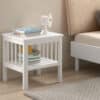 Het FORREST BEECH bed (90 x 200 cm) is vervaardigd uit hoogwaardige kwalitatieve Europese beuk. Het hoofdbord en de omkadering in witgelakte beuk geven een warme uitstraling. De nachttafel beschikt over twee open legplanken voor het opbergen van essenti�le items. De 2-deurs kleerkast biedt voldoende opbergruimte en bestaat uit 3 legplanken en een kledingrail. De afwerking benadrukt de schoonheid van het beukenhout, terwijl de stevige constructie zorgt voor duurzaamheid. De FORREST collectie is ontworpen met oog voor detail en straalt kwaliteit uit op elk niveau.