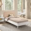 Het FORREST BEECH bed (90 x 200 cm) is vervaardigd uit hoogwaardige kwalitatieve Europese beuk. Dit bed beschikt over een stoffen boucl� hoofdbord in beige en dit in combinatie met de warme uitstraling van het beukenhout. De nachttafel beschikt over twee open legplanken die voldoende opbergruimte bieden voor essenti�le items. De afwerking benadrukt de schoonheid van het beukenhout, terwijl de stevige constructie zorgt voor duurzaamheid. De FORREST collectie is ontworpen met oog voor detail en straalt kwaliteit uit op elk niveau.