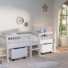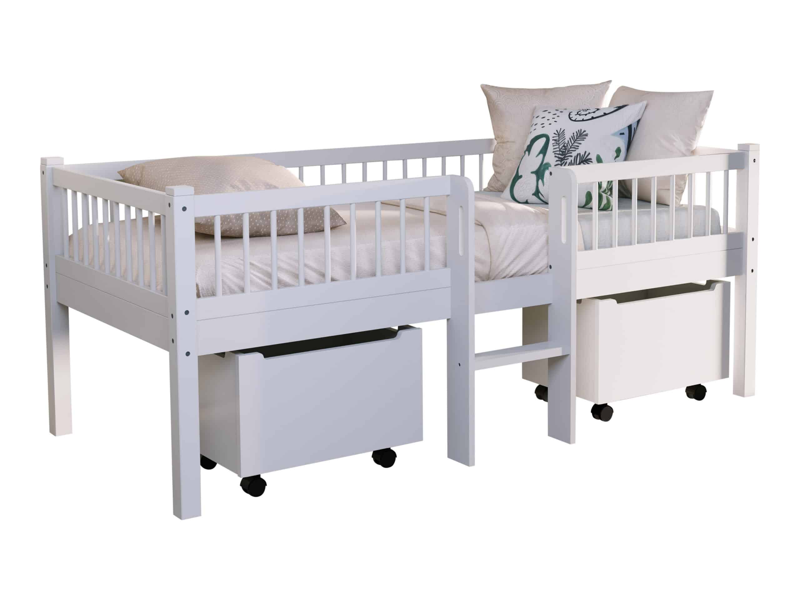 Het FORREST BEECH huisbed (90 x 200 cm) is vervaardigd uit hoogwaardige kwalitatieve Europese beuk. Het bed is verhoogd waardoor er ruimte is voor een leuke ladder. Dit bed beschikt over een hekje langs elke zijde dat dient als uitvalbeveiliging. De set van 2 lades vormen de perfecte aanvulling en kunnen gebruikt worden voor het opbergen van speelgoed, knuffels, boeken… Er zijn wieltjes onderaan voorzien zodat deze makkelijk verplaatst kunnen worden. De FORREST collectie is ontworpen met oog voor detail en straalt kwaliteit uit op elk niveau.
