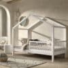 Het FORREST BEECH huisbed (90 x 200 cm) in wit is vervaardigd uit hoogwaardige kwalitatieve Europese beuk. Dit bed beschikt over een hekje langs 3 kanten dat kan dienen als uitvalbeveiliging, maar het is ook ideaal als zitbank. Maak het extra gezellig met kleurrijke kussens, dekentjes en een lichtslinger als decoratie. Het dak van het huisbed kan eenvoudig weggehaald worden waardoor dit item getransformeerd kan worden tot een tijdloos kajuitbed. De extra uitvalbeveiliging zorgt ervoor dat jouw kindje tijdens het slapen niet uit het bed kan vallen en draagt zo bij tot een goede nachtrust voor zowel ouder als kind. De FORREST collectie is ontworpen met oog voor detail en straalt kwaliteit uit op elk niveau.
