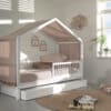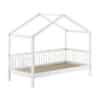 Het FORREST BEECH huisbed (90 x 200 cm) in wit is vervaardigd uit hoogwaardige kwalitatieve Europese beuk. Dit bed beschikt over een hekje langs 3 kanten dat kan dienen als uitvalbeveiliging, maar het is ook ideaal als zitbank. Maak het extra gezellig met kleurrijke kussens, dekentjes en een lichtslinger als decoratie. Het dak van het huisbed kan eenvoudig weggehaald worden waardoor dit item getransformeerd kan worden tot een tijdloos kajuitbed. De bedlade biedt een extra slaapplek voor een gast maar kan net zo goed dienen als extra opbergruimte. De extra uitvalbeveiliging zorgt ervoor dat jouw kindje tijdens het slapen niet uit het bed kan vallen en draagt zo bij tot een goede nachtrust voor zowel ouder als kind. De bijhorende textielset benadrukt het warme karakter en uitstraling van het hout en cre�ert een gezellige en geborgen slaapplek. De FORREST collectie is ontworpen met oog voor detail en straalt kwaliteit uit op elk niveau.