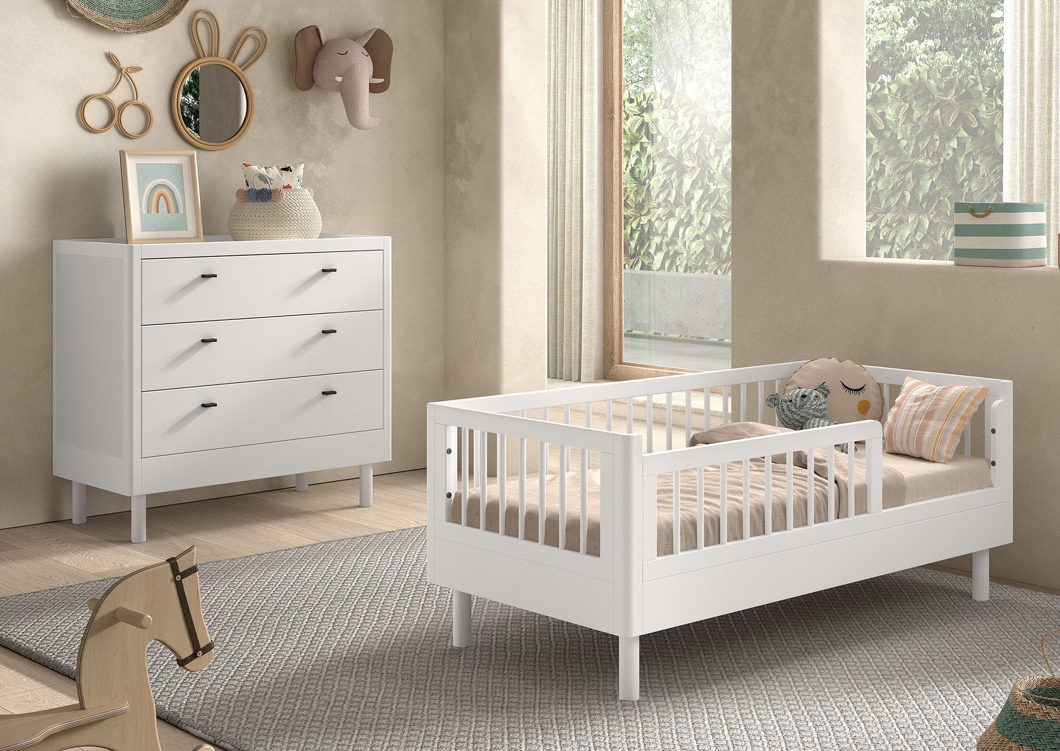 Het FORREST BEECH peuterbed (70 x 140 cm) is vervaardigd uit hoogwaardige kwalitatieve Europese beuk. Het bed is rondom voorzien van een hekje dat dient als uitvalbeveiliging. Dit biedt ook een geborgen gevoel, wat de overgang van een babybed makkelijker maakt. De commode heeft 3 ruime lades en combineert functionaliteit met een tijdloze stijl. Dit is een ideale toevoeging aan elke ruimte die een oplossing nodig heeft voor verzorgingsactiviteiten of opbergbehoeften. De FORREST collectie is ontworpen met oog voor detail en straalt kwaliteit uit op elk niveau. Deze collectie is niet beschikbaar voor dropshipment.