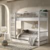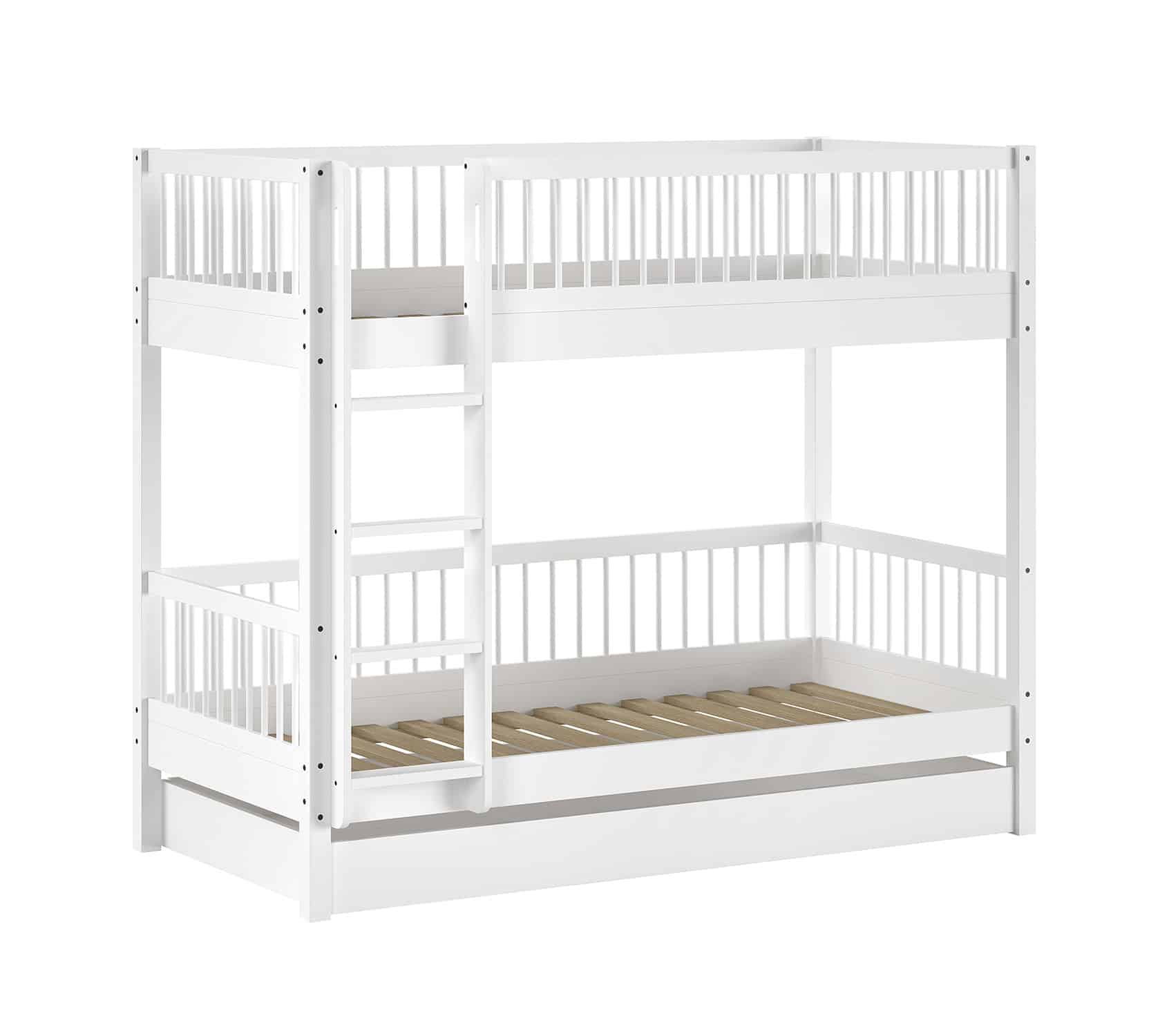 Het FORREST BEECH stapelbed (90 x 200 cm) in wit is vervaardigd uit hoogwaardige kwalitatieve Europese beuk. Het ontwerp is smaakvol maar ook praktisch en beschikt over 2 slaapplaatsen. De ladder kan zowel links als rechts gemonteerd worden. Het stapelbed kan met een optionele onderdelen omgebouwd worden naar 2 aparte bedden. De bedlade biedt een extra slaapplek voor een gast maar kan net zo goed dienen als extra opbergruimte. De FORREST collectie is ontworpen met oog voor detail en straalt kwaliteit uit op elk niveau.