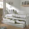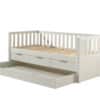 Het FRITZ kajuitbed (90 x 200 cm) in wit is vervaardigd in massief grenen. Er zijn 3 handige opberglades voorhanden. Het minimalistische en stijlvolle design maakt dat het in elk interieur past. Dit bed beschikt over een hekje langs 3 kanten dat kan dienen als uitvalbeveiliging, maar dat ook ideaal is als zitbank in combinatie met kussens. De bijhorende bedlade kan ingezet worden als extra slaapplaats voor logees of als opbergruimte. Er zijn wieltjes voorzien zodat de lade gemakkelijk kan worden in- en uitgetrokken.
