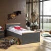 Het LONDON bed (90×200) in antraciet heeft een Scandinavisch karakter door de combinatie met massief grenen. Het bed werd afgewerkt in witte melamine wat zeer stevig en krasvrij is. Het nachtkastje beschikt over 2 uiterst handige lades die elk beschikken over een soft-close systeem. De smaakvolle accenten geven deze collectie meteen een stijlvol uiterlijk.