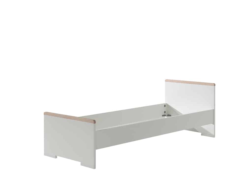 Het LONDON bed (90×200) in wit heeft een Scandinavisch karakter door de combinatie met massief grenen. Het bed werd afgewerkt in witte melamine wat zeer stevig en krasvrij is. Het nachtkastje beschikt over 2 uiterst handige lades die elk beschikken over een soft-close systeem. De 3-deurs kleerkast beschikt over 2 legplanken en heeft ook een hangreel over de gehele breedte van 2 deuren. Achter de 3de deur bevinden zich 4 legplanken. De smaakvolle accenten geven deze collectie meteen een stijlvol uiterlijk.