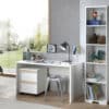 Het LONDON bureau in wit heeft een ruim schrijfoppervlak en er is extra veel opbergruimte voorzien in de bijpassende rolcontainer. De boekenkast is onderverdeeld in 5 vakken door middel van 4 legplanken en is ideaal voor het opbergen van schoolmateriaal en boeken of het uitstallen van persoonlijke spullen. De smaakvolle accenten geven deze collectie meteen een stijlvol uiterlijk.