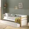 Het MARGRIT kajuitbed (90 x 200 cm) biedt meer dan alleen een plek om te slapen, het is eveneens een gezellige zitplek om te ontspannen, lezen of genieten van een rustig moment. De warme wit- en natuurtinten zorgen voor een Scandinavische look. Het rolbed is een perfecte aanvulling hierbij. Deze bedlade biedt een extra slaapplek voor een gast maar kan net zo goed dienen als extra opbergruimte.