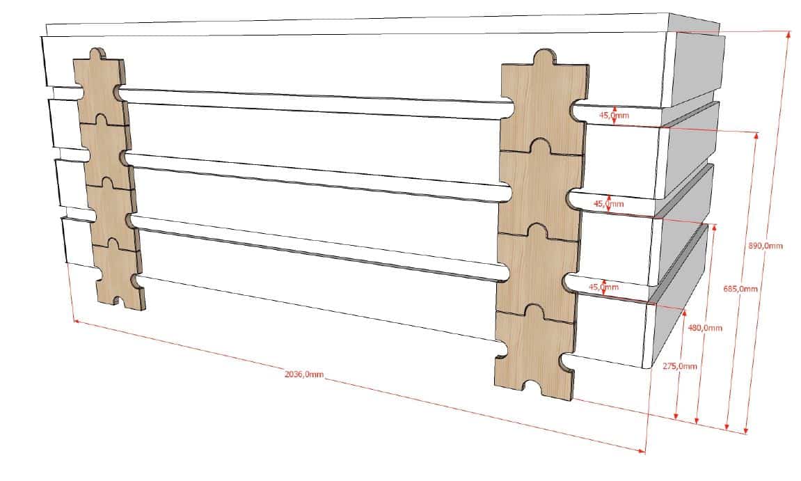 Deze uiterst handige stapelbare bedden van de MODULO-collectie zijn vervaardigd uit een combinatie van MDF en massief grenen. De lattenbodem is inclusief. U kunt deze bedden makkelijk stapelen om plaats te maken in de ruimte. De matras kan perfect in de gestapelde bedden blijven liggen. De massieve poten maken het bed super trendy! Deze combinatie is bevat 4 bedden.