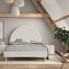 Dit gestoffeerde bed (90 x 200 cm) van de MOON collectie heeft een unieke boucl� bekleding in wit. De combinatie van deze stofbekleding en het afgeronde hoofdbord geven het bed een warme uitstraling en gezellig karakter. De poef in wit is een eye-catcher. De unieke boucl� stof cre�ert een warme uitstraling waardoor deze poef perfect in elke woonkamer, slaapkamer of leeshoek past. Dit item kan gebruikt worden als extra zitplaats, voetenbankje of als trendy nachttafel naast het bed waar je jouw boek of telefoon binnen handbereik kunt houden. Het is niet alleen een praktische meubelstuk, maar ook een decoratief item dat de ruimte verrijkt.