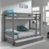 Dit PINO stapelbed is grijs gelakt en vervaardigd uit massief Scandinavisch grenen hout. Het bed heeft een hoogte van 160 cm. De ladder kan gemonteerd worden aan de linker- en rechterzijde. De lattenbodem is inclusief en is geschikt voor een matras van 90 x 200 cm. Bij deze combinatie is een Pino rolbed 90x195cm inbegrepen.