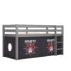 Deze PINO hoogslaper is vervaardigd van massief grenen en is grijs gelakt. De ladder kan zowel links als rechts gemonteerd worden. De lattenbodem is inbegrepen. De allround valbeveiliging, brede treden en goede stabiliteit maken dit bed heel veilig. De ruimte onder het bed kan gebruikt worden om te spelen of als opbergruimte. In het PINO gamma zijn verschillende mogelijkheden beschikbaar om dit bed aan te vullen met een bureau, bibliotheek, commodes, hangplankje of leuke textielset. Bij deze combinatie is een speelgordijn Pirates inbegrepen.