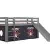 Deze PINO hoogslaper is vervaardigd van massief grenen en is grijs gelakt. Kinderen zijn dol op de glijbaan en ladder die zowel links als rechts gemonteerd kunnen worden. De lattenbodem is inbegrepen. De allround valbeveiliging, brede treden en goede stabiliteit maken dit bed heel veilig. De ruimte onder het bed kan gebruikt worden om te spelen of als opbergruimte. In het PINO gamma zijn verschillende mogelijkheden beschikbaar om dit bed aan te vullen met een bureau, bibliotheek, commodes, hangplankje of leuke textielset. Bij deze combinatie is een speelgordijn Pirates inbegrepen.