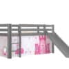 Deze PINO hoogslaper is vervaardigd van massief grenen en is grijs gelakt. Kinderen zijn dol op de glijbaan en ladder die zowel links als rechts gemonteerd kunnen worden. De lattenbodem is inbegrepen. De allround valbeveiliging, brede treden en goede stabiliteit maken dit bed heel veilig. De ruimte onder het bed kan gebruikt worden om te spelen of als opbergruimte. In het PINO gamma zijn verschillende mogelijkheden beschikbaar om dit bed aan te vullen met een bureau, bibliotheek, commodes, hangplankje of leuke textielset. Bij deze combinatie is een speelgordijn Princess inbegrepen.