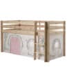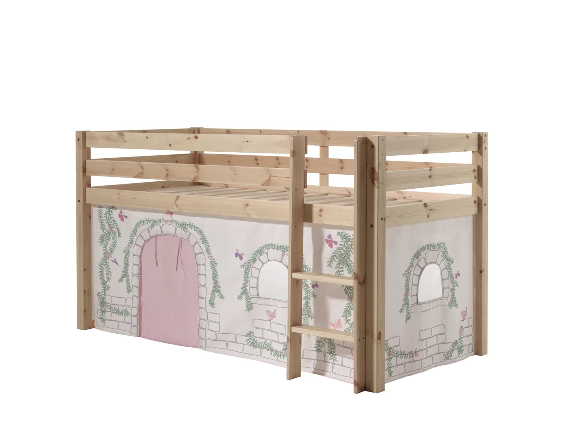 Deze PINO hoogslaper is vervaardigd van massief grenen en is natuur gelakt. De ladder kan zowel links als rechts gemonteerd worden. De lattenbodem is inbegrepen. De allround valbeveiliging, brede treden en goede stabiliteit maken dit bed heel veilig. De ruimte onder het bed kan gebruikt worden om te spelen of als opbergruimte. In het PINO gamma zijn verschillende mogelijkheden beschikbaar om dit bed aan te vullen met een bureau, bibliotheek, commodes, hangplankje of leuke textielset. Bij deze combinatie is een speelgordijn Birdy inbegrepen.