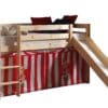 Deze PINO hoogslaper is vervaardigd van massief grenen en is natuur gelakt. Kinderen zijn dol op de glijbaan en ladder die zowel links als rechts gemonteerd kunnen worden. De lattenbodem is inbegrepen. De allround valbeveiliging, brede treden en goede stabiliteit maken dit bed heel veilig. De ruimte onder het bed kan gebruikt worden om te spelen of als opbergruimte. In het PINO gamma zijn verschillende mogelijkheden beschikbaar om dit bed aan te vullen met een bureau, bibliotheek, commodes, hangplankje of leuke textielset. Bij deze combinatie is alvast een speelgordijn Chucky inbegrepen.