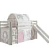 Deze PINO hoogslaper is vervaardigd van massief grenen en is wit gelakt. Kinderen zijn dol op de glijbaan en ladder die zowel links als rechts gemonteerd kunnen worden. De lattenbodem is inbegrepen. De allround valbeveiliging, brede treden en goede stabiliteit maken dit bed heel veilig. De ruimte onder het bed kan gebruikt worden om te spelen of als opbergruimte. In het PINO gamma zijn verschillende mogelijkheden beschikbaar om dit bed aan te vullen met een bureau, bibliotheek, commodes, hangplankje of leuke textielset. Bij deze combinatie zijn een speelgordijn Birdy en een tunnel Birdy inbegrepen.