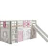 Deze PINO hoogslaper is vervaardigd van massief grenen en is wit gelakt. Kinderen zijn dol op de glijbaan en ladder die zowel links als rechts gemonteerd kunnen worden. De lattenbodem is inbegrepen. De allround valbeveiliging, brede treden en goede stabiliteit maken dit bed heel veilig. De ruimte onder het bed kan gebruikt worden om te spelen of als opbergruimte. In het PINO gamma zijn verschillende mogelijkheden beschikbaar om dit bed aan te vullen met een bureau, bibliotheek, commodes, hangplankje of leuke textielset. Bij deze combinatie zijn een speelgordijn Birdy en zakjes 3 stuks Birdy inbegrepen.