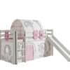 Deze PINO hoogslaper is vervaardigd van massief grenen en is wit gelakt. Kinderen zijn dol op de glijbaan en ladder die zowel links als rechts gemonteerd kunnen worden. De lattenbodem is inbegrepen. De allround valbeveiliging, brede treden en goede stabiliteit maken dit bed heel veilig. De ruimte onder het bed kan gebruikt worden om te spelen of als opbergruimte. In het PINO gamma zijn verschillende mogelijkheden beschikbaar om dit bed aan te vullen met een bureau, bibliotheek, commodes, hangplankje of leuke textielset. Bij deze combinatie zijn een speelgordijn Birdy, zakjes 3 stuks Birdy en een tunnel Birdy inbegrepen.