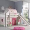 Deze PINO hoogslaper is vervaardigd van massief grenen en is wit gelakt. Kinderen zijn dol op de glijbaan en ladder die zowel links als rechts gemonteerd kunnen worden. De lattenbodem is inbegrepen. De allround valbeveiliging, brede treden en goede stabiliteit maken dit bed heel veilig. De ruimte onder het bed kan gebruikt worden om te spelen of als opbergruimte. In het PINO gamma zijn verschillende mogelijkheden beschikbaar om dit bed aan te vullen met een bureau, bibliotheek, commodes, hangplankje of leuke textielset. Bij deze combinatie zijn alvast een speelgordijn Spring en een tunnel Spring inbegrepen.