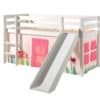 Deze PINO hoogslaper is vervaardigd van massief grenen en is wit gelakt. Kinderen zijn dol op de glijbaan en ladder die zowel links als rechts gemonteerd kunnen worden. De lattenbodem is inbegrepen. De allround valbeveiliging, brede treden en goede stabiliteit maken dit bed heel veilig. De ruimte onder het bed kan gebruikt worden om te spelen of als opbergruimte. In het PINO gamma zijn verschillende mogelijkheden beschikbaar om dit bed aan te vullen met een bureau, bibliotheek, commodes, hangplankje of leuke textielset. Bij deze combinatie is alvast een speelgordijn Spring inbegrepen.