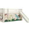 Deze PINO hoogslaper is vervaardigd van massief grenen en is wit gelakt. Kinderen zijn dol op de glijbaan en ladder die zowel links als rechts gemonteerd kunnen worden. De lattenbodem is inbegrepen. De allround valbeveiliging, brede treden en goede stabiliteit maken dit bed heel veilig. De ruimte onder het bed kan gebruikt worden om te spelen of als opbergruimte. In het PINO gamma zijn verschillende mogelijkheden beschikbaar om dit bed aan te vullen met een bureau, bibliotheek, commodes, hangplankje of leuke textielset. Bij deze combinatie is een speelgordijn dino inbegrepen.