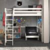 Het PINO mezzanine bed is wit gelakt en gemaakt uit massief Scandinavisch grenen hout. De lattenbodem is inclusief en geschikt voor een matras 140 x 200 cm. Het pino hangplankje is niet compatibel met dit bed van 140 cm. Bij deze combinatie zijn een Pino boekenkast en een Pino zetelbed inbegrepen.