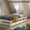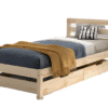 Het eenpersoonsbed (90 x 200 cm) in natuurkleur uit de PINO collectie past door het strak en minimalistisch design bij verschillende interieurstijlen. Dit bed is robuust en van een uitstekende kwaliteit die jarenlang meegaat. Het bed is vervaardigd uit Scandinavisch grenen. Er is een rollattenbodem voorzien. De set van 2 lades kan dienen als extra opbergruimte.