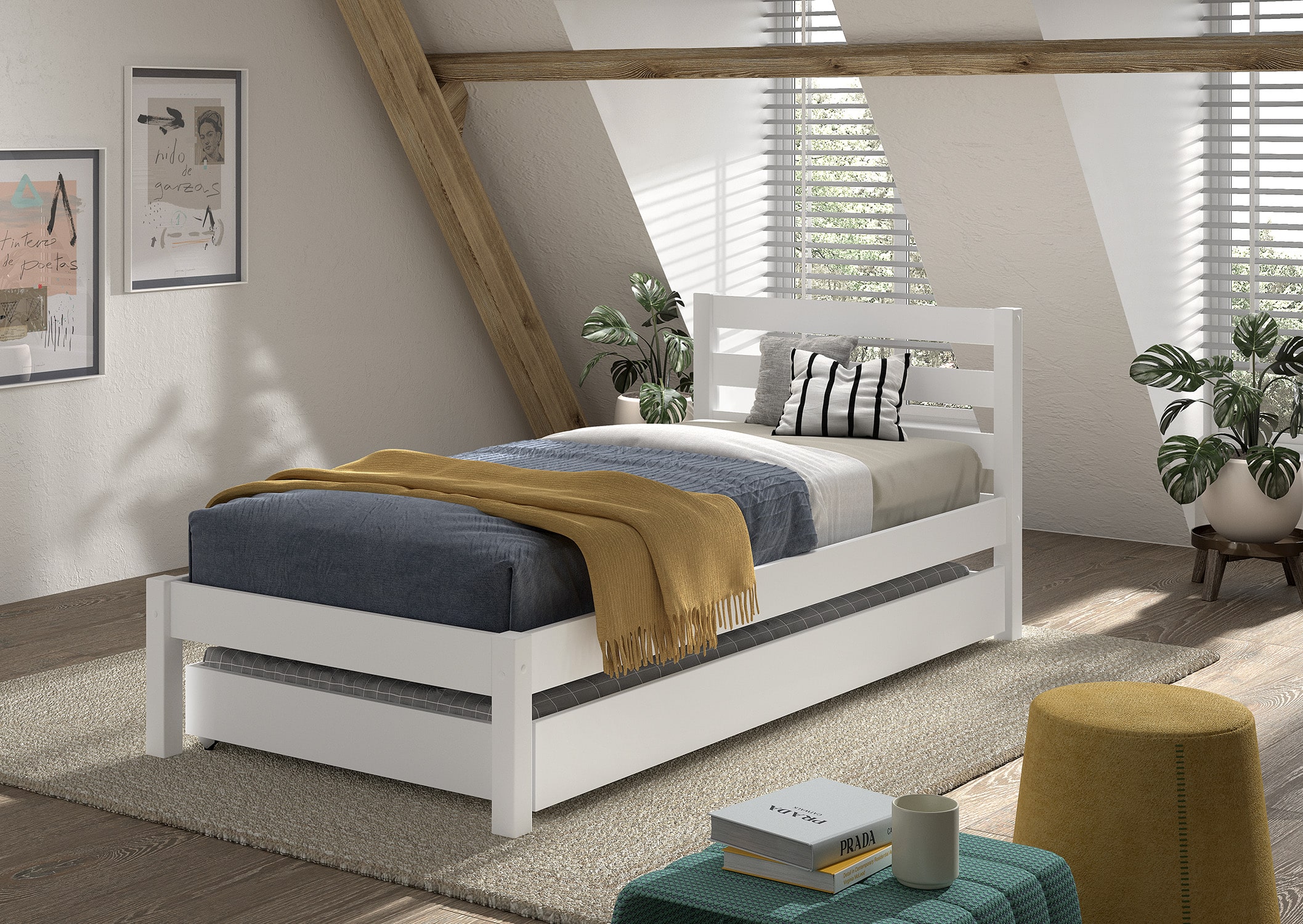 Het eenpersoonsbed (90 x 200 cm) in wit uit de PINO collectie past door het strak en minimalistisch design bij verschillende interieurstijlen. Dit bed is robuust en van een uitstekende kwaliteit die jarenlang meegaat. Het bed is vervaardigd uit Scandinavisch grenen. De lattenbodem is niet inbegrepen. De bedlade biedt een extra slaapplek voor een gast maar kan net zo goed dienen als extra opbergruimte.