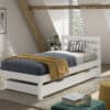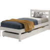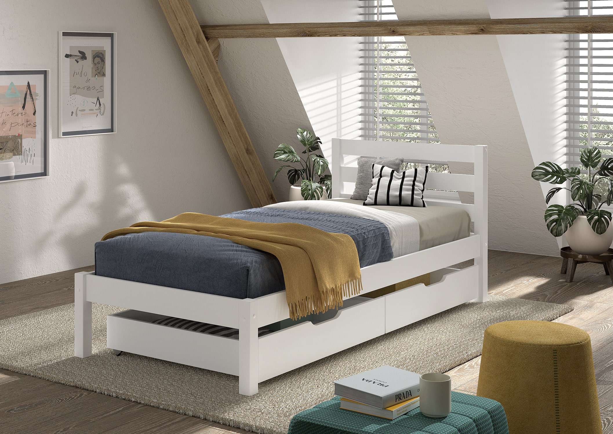 Het eenpersoonsbed (90 x 200 cm) in wit uit de PINO collectie past door het strak en minimalistisch design bij verschillende interieurstijlen. Dit bed is robuust en van een uitstekende kwaliteit die jarenlang meegaat. Het bed is vervaardigd uit Scandinavisch grenen. De lattenbodem is niet inbegrepen. De set van 2 lades kan dienen als extra opbergruimte.