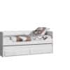 Dit ROBIN kajuitbed is gemaakt uit wit gelakte MDF in combinatie met massief grenen. De lattenbodems alsook het rolbed onder het bed zijn inbegrepen. In het rolbed bevinden zich 2 opberglades. Het geheel is afgewerkt met fijne verticale groeven die een warm landelijk gevoel cre�ren.
