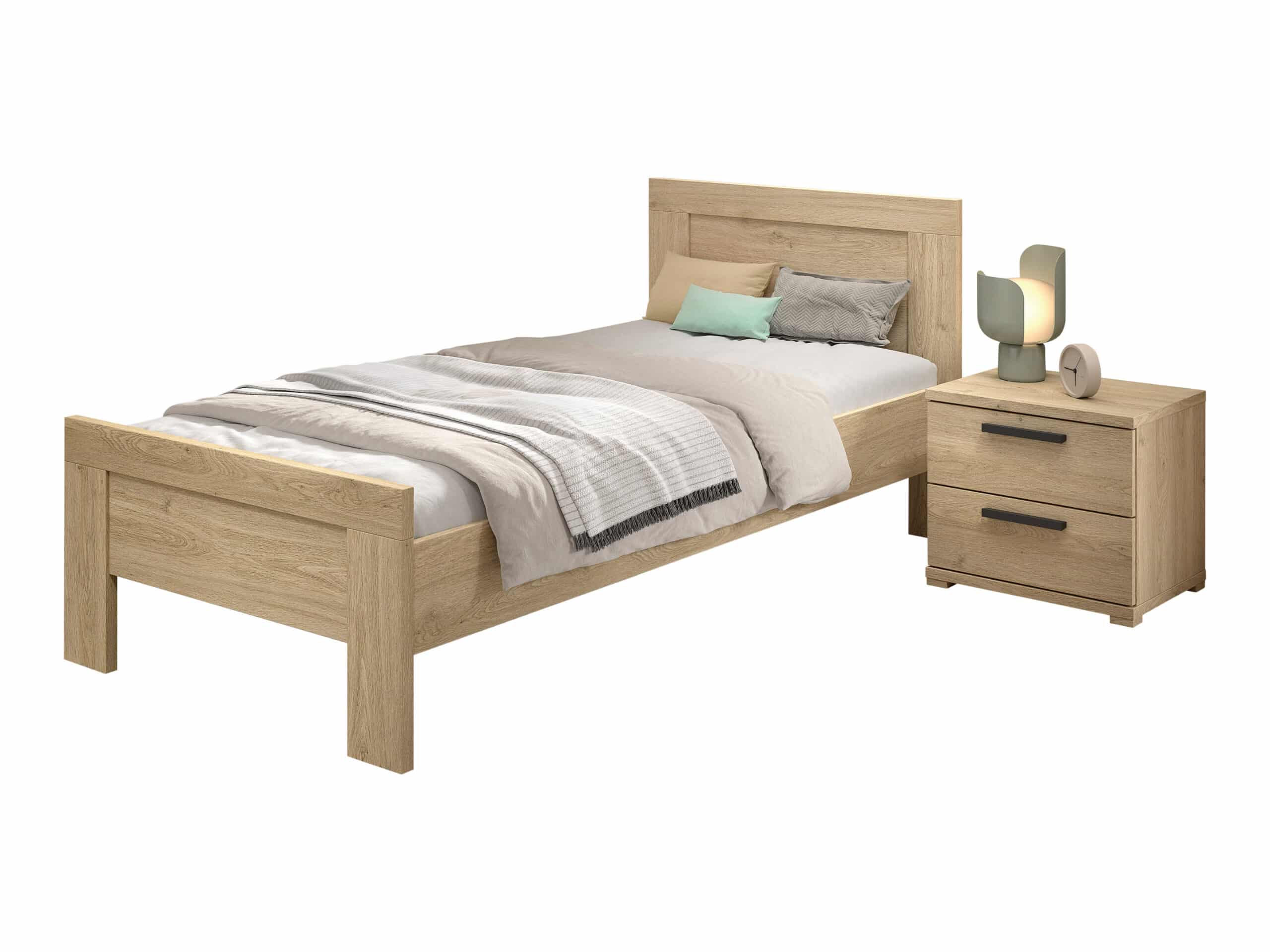 Dit bed (90 x 200 cm) uit de veelzijdige SAM collectie is de perfecte oplossing voor iedereen die op zoek is naar modern, stijlvol en praktisch meubilair. Met een warme houtlook en minimalistisch design is dit bed ideaal voor zowel kinderen als jongeren. Gemaakt van duurzame materialen die tegen een stootje kunnen, zodat het bed jarenlang meegaat. De lattenbodem is niet inbegrepen. De nachttafel beschikt over 2 ruime lades voor het opbergen van persoonlijke spullen.