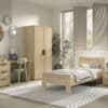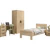 Dit bed (90 x 200 cm) uit de veelzijdige SAM collectie is de perfecte oplossing voor iedereen die op zoek is naar modern, stijlvol en praktisch meubilair. Met een warme houtlook en minimalistisch design is dit bed ideaal voor zowel kinderen als jongeren. Gemaakt van duurzame materialen die tegen een stootje kunnen, zodat het bed jarenlang meegaat. De lattenbodem is niet inbegrepen. De nachttafel beschikt over 2 ruime lades. De 2-deurs kleerkast biedt voldoende opbergruimte en bestaat uit 2 legplanken en een kledingrail. Het bureau heeft een ruim werkoppervlak voor schoolwerk of creatieve projecten. Ook zijn er 3 lades voorzien zodat alle schoolmateriaal en persoonlijke spullen netjes opgeborgen kunnen worden.