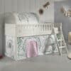 De SCOTT halfhoogslaper (90 x 200 cm) met ladder in wit is vervaardigd uit massief Scandinavisch grenen. Het is niet alleen een comfortabele slaapplek, maar geeft ook eindeloos speelplezier. Er kunnen optioneel lades toegevoegd worden die kunnen ingezet worden als opbergruimte voor speelgoed, boeken, kussens,… Dit maakt het ideaal voor kamers waar ruimtebesparing essentieel is. De textielset in het thema BIRDY is de perfecte aanvulling hierop. Kinderen genieten met volle teugen van hun verborgen speelparadijs onder hun bed!