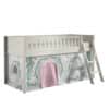 De SCOTT halfhoogslaper (90 x 200 cm) met ladder in wit is vervaardigd uit massief Scandinavisch grenen. Het is niet alleen een comfortabele slaapplek, maar geeft ook eindeloos speelplezier. Er kunnen optioneel lades toegevoegd worden die kunnen ingezet worden als opbergruimte voor speelgoed, boeken, kussens,… Dit maakt het ideaal voor kamers waar ruimtebesparing essentieel is. Het speelgordijn in het thema BIRDY is de perfecte aanvulling hierop. Kinderen genieten met volle teugen van hun verborgen speelparadijs onder hun bed!