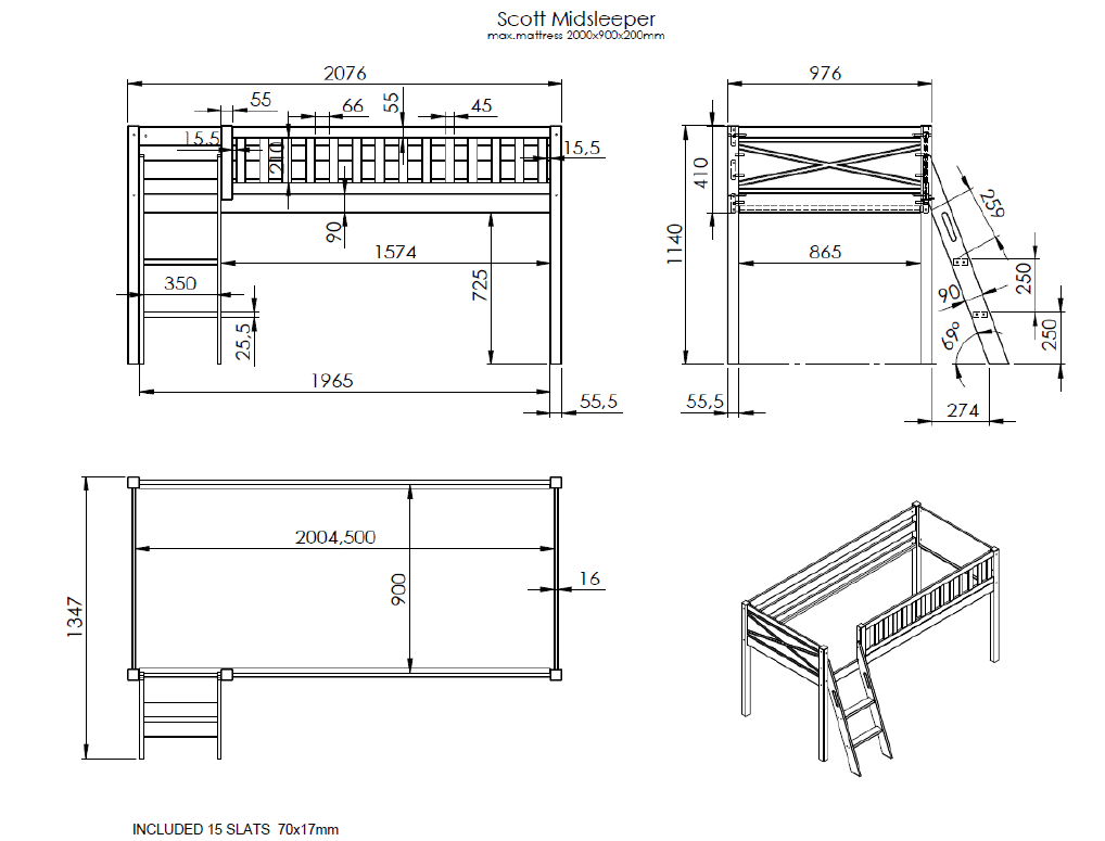 De SCOTT halfhoogslaper (90 x 200 cm) met ladder in wit is vervaardigd uit massief Scandinavisch grenen. Het is niet alleen een comfortabele slaapplek, maar geeft ook eindeloos speelplezier. Er kunnen optioneel lades toegevoegd worden die kunnen ingezet worden als opbergruimte voor speelgoed, boeken, kussens,… Dit maakt het ideaal voor kamers waar ruimtebesparing essentieel is. De textielset in het thema ASTRO is de perfecte aanvulling hierop. Kinderen genieten met volle teugen van hun verborgen speelparadijs onder hun bed!