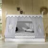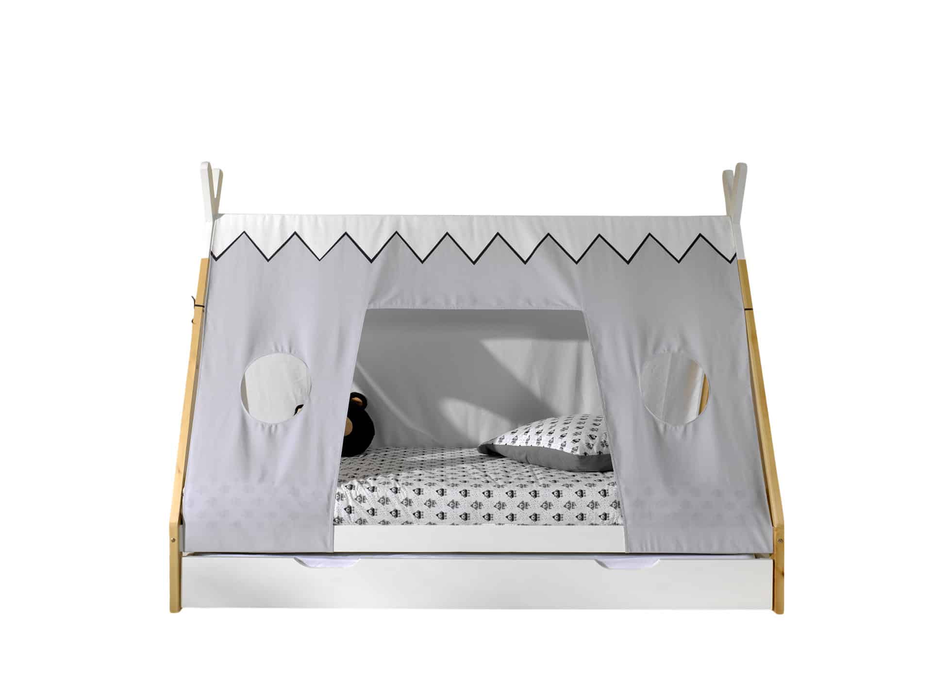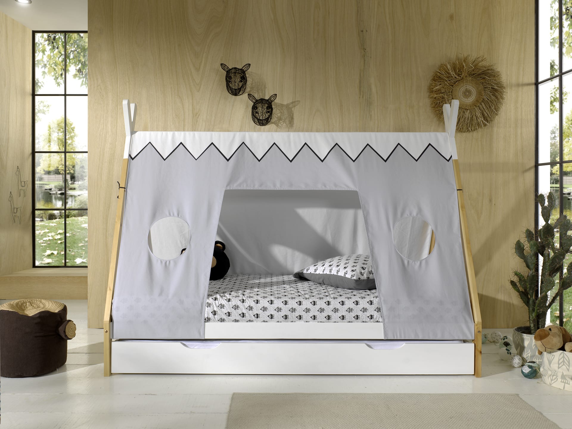 Dit bed (90 x 200 cm) van de TIPI collectie is vervaardigd uit massief grenen. Kinderen zijn dol op het speelse design. Versier dit bed met een leuke (licht)slinger of andere accessoires en cre�er samen het bed van zijn of haar dromen! Dit bed wordt gecombineerd met een bedlade in de kleur wit. Onderaan deze bedlade zijn wieltjes voorzien zodat deze gemakkelijk kan worden in- en uitgetrokken. Het biedt een extra slaapplek voor een gast maar kan net zo goed dienen als extra opbergruimte. De textielset vormt de perfecte aanvulling op dit tipi bed.