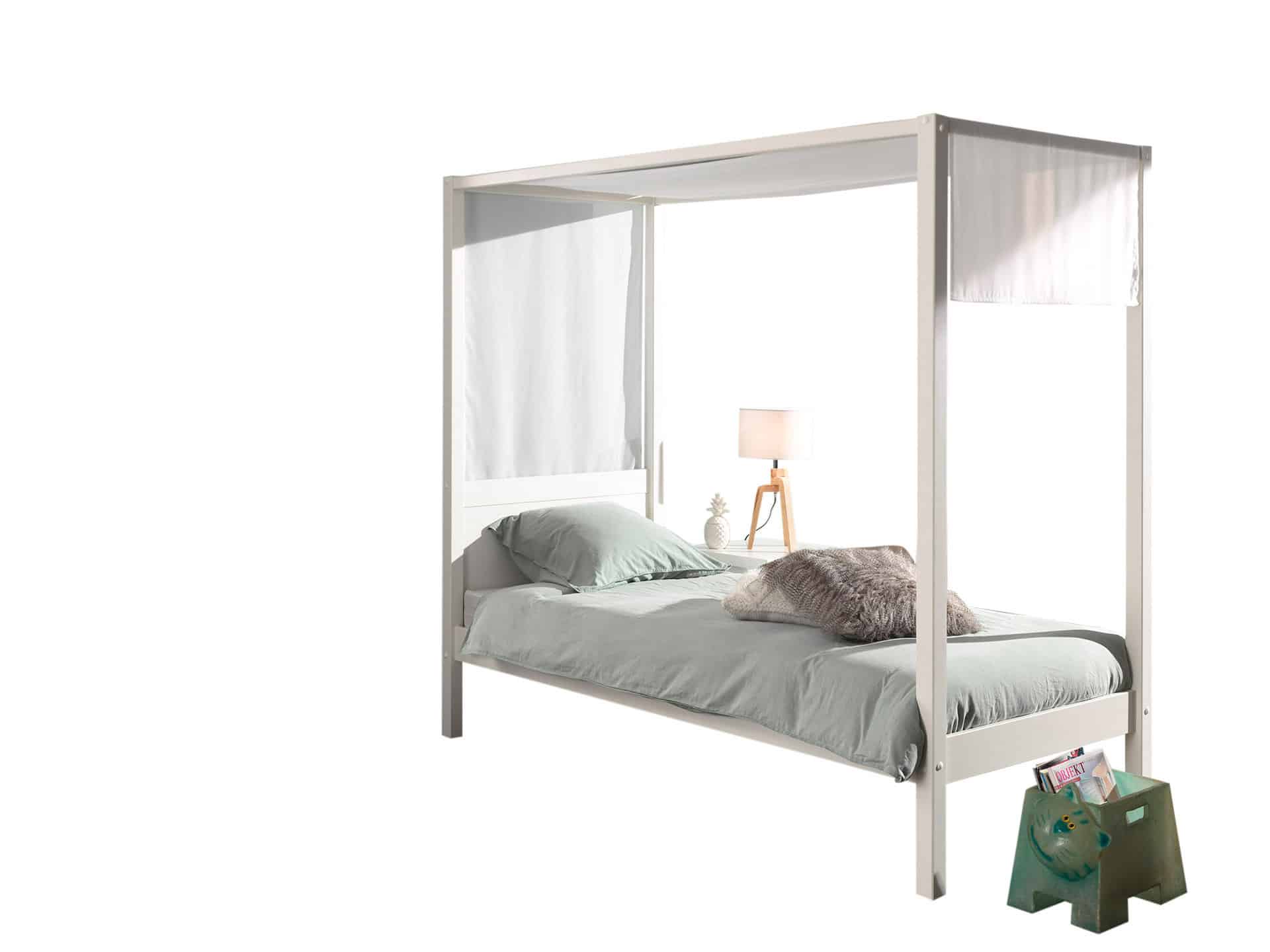 Deze PINO combinatie bestaat uit het witte hemelbed 90 x 200 cm met bijhorende textielset.