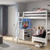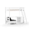 Deze PINO combinatie bestaat uit de PINO hoogslaper 90 x 200 cm, bijhorende boekenkast en zetelbed. De hoogslaper is vervaardigd uit wit gelakt massief grenen. Deze opstelling is de ultieme combinatie van functionaliteit, stijl en ruimtebesparing. Voor de liefhebbers van gaming biedt deze opstelling de perfecte place-to-be. Door het verhoogde slaapgedeelte wordt er een gezellige gaming corner gecre�erd. De boekenkast kan gebruikt worden als bibliotheek maar biedt net zo goed ruimte voor gamingconsoles, computers en andere accessoires. Het zetelbed vormt niet alleen een leuke zitplek maar is ook omvormbaar naar een extra slaapplek voor een gast.