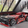 Deze MRX sleepcar vervaardigd uit zwarte gelakte MDF met een en rood detail. Dit carbed lijkt als 2 druppels water op een echte Formule 1-wagen door de verschroomde wielen, de verhoogde zijdes en de print. De bijhorende lattenbodem en een BASIC COOL MATRAS zijn inbegrepen